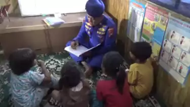 "Melihat keadaan seperti itu, kami berusaha dan mengajak adik - adik untuk belajar di kantor Satpolairud Bangkalan," lanjutnya