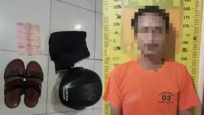 Dari pengakuan pelaku, petugas berhasil mengamankan barang bukti berupa satu buah celana jeans, helm Honda warna hitam, sepasang sandal kulit dan uang sisa penjualan sebesar Rp400.000.