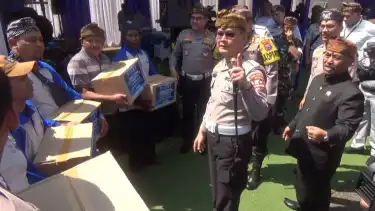 Probolinggo, tvOnenews.com - Korlantas Polri memberikan bantuan paket sembako pada komunitas angkutan jeep Bromo, akibat peristiwa kebakaran kawasan Bromo yang berimbas wisata Bromo ditutup total hingga batas waktu yang belum ditentukan.