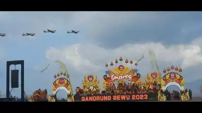"Festival Gandrung Sewu tahun ini benar-benar beda. Ada atraksi pesawat tempur dan terjun payung dari jajaran TNI AU. Ini luar biasa," kata Bupati Banyuwangi Ipuk Fiestiandani.