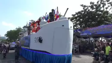 Ribuan Warga Kota Surabaya Antusias Sambut Pawai Kirab Kota Parade Militer HUT TNI AL