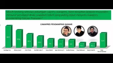 Dalam survei SRS, 19,4 persen responden warga Jatim memilih Sandiaga sebagai cawapres Ganjar. Kemudian 15,6 persen warga Jatim memilih Ridwan Kamil sebagai Cawapres Ganjar.