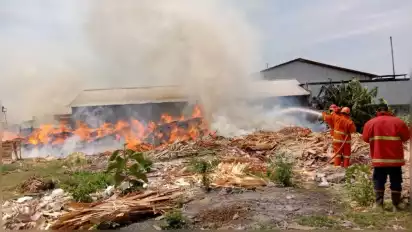 "Awalnya, saat semua karyawan sedang istirahat, salah satu karyawan pergi ke belakang pabrik terkejut melihat ada tumpukan sisa hasil produksi triplek di belakang pabrik terbakar," kata Toni.