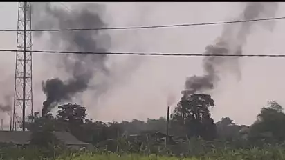 Sidoarjo, tvOnenews.com - Warga Desa Tropodo Krian Sidoarjo mengeluhkan limbah polusi asap pembakaran pengorengan tahu di kawasan Dusun Arang-Arang Desa Tropodo, Krian. Warga mengatakan polusi asap yang kerap kali keluar dari cerobong asap pengorengan yang ditimbulkan tempat pengorengan tahu tersebut membuuat resah.