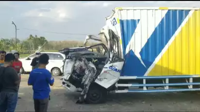 Diduga Mengantuk, Truk Boks Tabrak Truk Muatan Sapi di Tol Ngawi, Sopir Tewas Tergencet