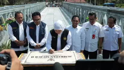 "Saya berterima kasih, kerjasama ini baik dari pemerintah ini membawa percepatan pembangunan sehingga selesai dan bisa dilalui masyarakat," terang Gubernur Jatim, Khofifah Indar Parawansa kepada sejumlah awak media usai menandatangani prasasti peresmian, Rabu (20/9).