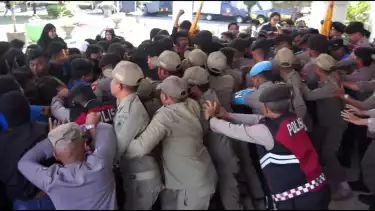 Lumajang, tvOnenews.com - Aksi demonstrasi ratusan mahasiswa yang tergabung dalam Pergerakan Mahasiswa Islam Indonesia (PMII) Kabupaten Lumajang di Kantor Bupati Lumajang diwarnai kericuhan, Kamis (21/9).