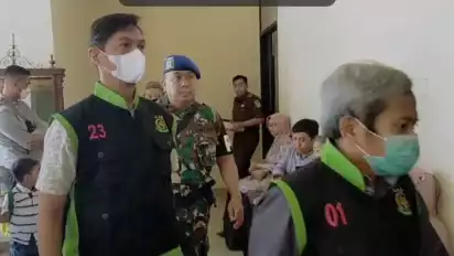 "Ya hari ini merupakan sidang pertama perkara koneksitas yang melibatkan TNI, dalam korupsi fiktif pembangunan rumah prajurit, terdakwa dindin kamaludin eks TNI AD berpangkat Letkol juga perna terlibat kasus penipuan dan sudah di putus bersalah di pengadilan militer dengan hukuman 8 bulan,” ucap Aspidmil Kejati Jatim, Kolonel Laut Hadi Pangestu.