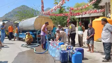 Untuk Polres Mojokerto, kali ini memberikan bantuan air bersih sejumlah empat tangki, yang dialokasikan dua dusun yang mengalami kekeringan.