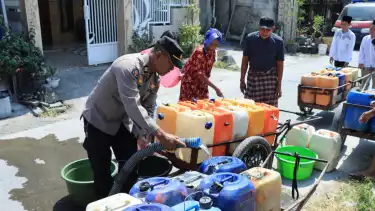 Gresik, tvOnenews.com - Musim kemarau panjang mengakibatkan warga di wilayah Kecamatan Duduksampeyan, Gresik, mengalami krisis air bersih. Untuk meringankan kesulitan warga, sebanyak 25 ribu liter air bersih di dropping oleh jajaran Polres Gresik.