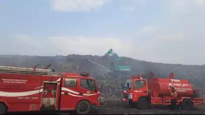 Mojokerto, tvOnenews.com - Lebih dari dua pekan, kebakaran yang melanda Tempat Pembuangan Akhir (TPA) sampah, Randegan, Kelurahan Kedundung, Kecamatan Magersari, Kota Mojokerto tak kunjung padam. Meski petugas pemadam kebakaran dibantu dengan alat berat melakukan penguraian sampah dan pembasahan, namun hingga Rabu (11/10/ 2023) sore, kepulan asap masih keluar dari gunungan sampah.