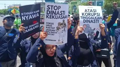 Mahasiswa menolak politik dinasti, dalam aksinya mahasiswa mendesak Mahkamah Konstitusi untuk menolak gugatan sejumlah ormas maupun parpol, soal batasan usia calon presiden maupun wakil presiden di Indonesia di atas 40 tahun.