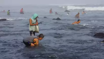 Fenomena Kemunculan Kerang Simping di Pesisir Pantai Selatan Lumajang saat Kemarau Panjang, Jadi Buruan Warga