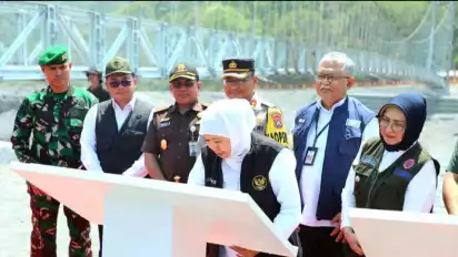 "Kami berharap semua yang kita lakukan menambah kemudahan masyarakat, meningkatkan akses masyarakat, Insya’Allah membahagiakan masyarakat, mudah-mudahan Jawa Timur Allah anugrahkan keberkahan," ujar Gubernur Khofifah Indar Parawansa saat meresmikan Jembatan Kaliregoyo, Selasa (17/10).
