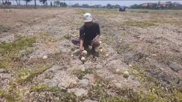 Sidoarjo, tvOnenews - Dampak cuaca panas, puluhan petani melon di Desa Damarsi, Kecamatan Buduran, Sidoarjo, mengalami gagal panen. Para petani yang biasanya mendapat hasil panen melon yang maksimal, kini mengalami kerugian cukup besar, lantaran melon yang ditanam tidak bisa berbuah besar, rata-rata melon hanya mencapai sebesar genggaman orang dewasa.