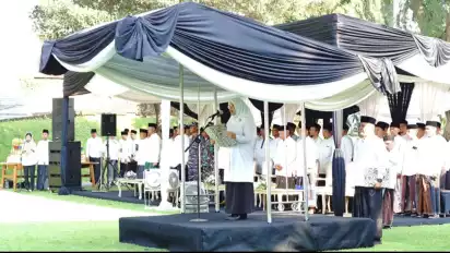 “Sebagaimana tema hari santri, Jihad Santri Jayakan Negeri, bisa berupa jihad melawan perundungan di lingkungan pendidikan,” pesan Ipuk saat memberikan amanat pada upacara HSN di halaman Pendopo Sabha Swagata Blambangan.