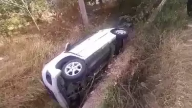 Bangkalan, tvOnenews.com – Usai melintas di akses tol Suramadu sisi Bangkalan Madura, sebuah mobil jenis city car terguling ke jalur drainase persawahan yang kering. Sejumlah pengguna jalan merasa kaget dan berhenti untuk melihat langsung keberadaan kendaraan maupun kondisi korban.