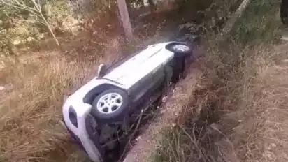 Ia mengatakan, mobil tersebut ditumpangi oleh tiga orang. Meski kendaraan jatuh ke selokan namun tidak ada korban jiwa.