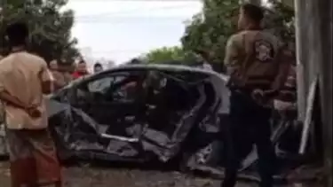 Hingga akhirnya mobil berhasil berhenti, di atas selokan dengan kondisi mobil sudah ringsek tak berbentuk.
