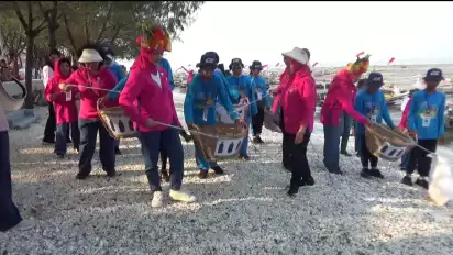 “Jadi mulai sekarang kalau membuang sampah di tempatnya, kan sudah disediakan tong-tong sampah. Harus cinta lingkungan, cinta pantai,” imbuhnya.