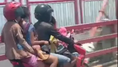 Dalam video amatir yang beredar, pengendara sepeda motor matic itu berisi dua orang perempuan dewasa di bagian belakang sambil mengendong anak balita, dan dua orang anak-anak lainnya berada di bagian depan, ditambah seorang sopir sepeda motor hingga total kendaraan di tumpangi enam orang.