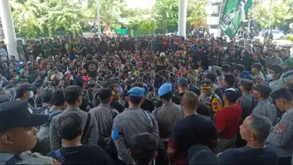 Buntut kekalahan beruntun Persebaya Surabaya dalam laga lanjutan liga 1, ratusan suporter menggelar aksi menuntut janji Manajemen Persebaya v