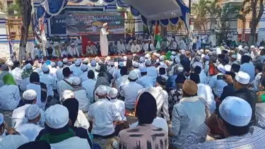Sampang, tvOnenews.com - Ribuan kaum muslimin berkumpul di Jalan Wijaya Kusuma tepatnya depan kantor Dewan Perwakilan Rakyat Daerah (DPRD) Kabupaten Sampang, Madura, guna menggelar aksi solidaritas untuk saudara muslim di Palestina yang kini sedang alami peperangan dengan Israel.