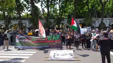 Bawa Keranda Mayat, Massa Aktivis Gelar Aksi Bela Palestina di Depan Kantor DPRD Gresik
