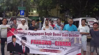 Paguyuban Bemo dan Bentor di Surabaya Beri Dukungan ke Pasangan Prabowo – Gibran, Pasang Foto di Kendaraan Masing-masing