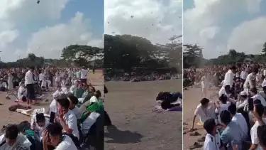 Banyuwangi, tvOnenews.com – Fenomena langka muncul di tengah kegiatan salat Istisqa yang digelar warga Banyuwangi di lapangan Lukjak, Rogojampi. Ketika warga khusuk berdoa mendadak muncul angin lesus. Angin ini sempat menerbangkan sejumlah peralatan salat milik warga.