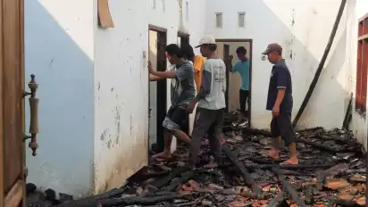 Beruntung, warga sekitar sigap merusak atap teras yang tersambung ke rumah sebelah. Sehingga, api tidak sampai merambat.