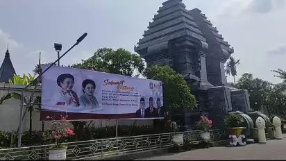 Dalam rangka menyambut rombongan peziarah, banner sambutan selamat datang baik untuk capres dan cawapres serta pengurus DDP PDI Perjuangan terpasang di sejumlah lokasi. (min/far)