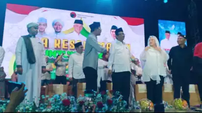 Gresik, tvOnenews.com - Gelaran doa bersama yang diikuti puluhan ribu massa, untuk keselamatan bangsa di Stadion Gelora Joko Samudro (Gejos) Gresik, Jumat (3/11) malam dihadiri oleh bakal calon wakil presiden (bacawapres) Mohammad Mahfud Mahmodin atau Mahfud MD dan ketua DPR RI Puan Maharani.