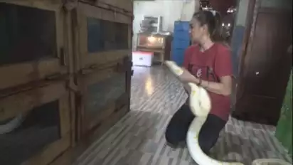 Ular-ular miliknya jenis albino, katanya, cukup bersahabat tidak pernah agresif melawan, yang penting memegangnya dengan cara yang benar, tidak membuatnya terkejut, tidak menyakiti dan ular dalam kondisi kenyang.