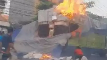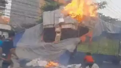 Truk Muatan Perlengkapan Olahraga Premium Terbakar, Warga Malah Berkerumun Mengambil yang Belum Terbakar
