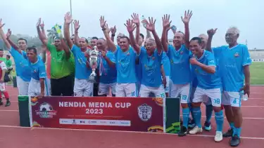 Gresik, tvOnenews.com - Untuk menyemarakkan Piala Dunia U-17 yang digelar di Gelora Bung Tomo, Surabaya, tim All Star Jawa Timur yang merupakan mantan legenda sepak bola timnas, bersama wartawan peliput Piala Dunia U-17 menggelar Trofeo Cup. Laga digelar di Stadion Gelora Joko Samudro (Gejos) Gresik, ikut pula tim wartawan DKI Jaya.