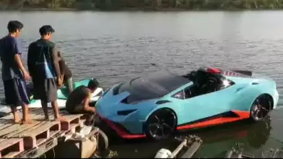 Mobil Mewah Lamborghini Berjalan di Atas Air di Sungai Porong Sidoarjo
