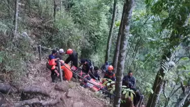 Evakuasi Wisatawan Alami Cedera Kaki dari Dasar Air Terjun Kapas Biru Berlangsung Dramatis