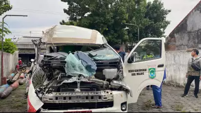 Ambulans RSUD Kepanjen Tabrak Truk Muatan Tabung Oksigen di Pakisaji Malang