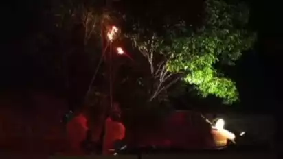 Lanjutnya, Iskandar menuturkan, petugas akhirnya mengambil tindakan membakar sarang tersebut melalui sebilah bambu yang ujungnya diberi kain dan dibakar.