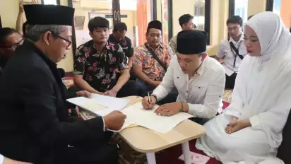 Acara pernikahan tersebut, langsung dihadiri oleh penghulu dari KUA Kecamatan Mayangan dan beberapa perwakilan dari keluarga mempelai Doni maupun YL. (msn/hen)