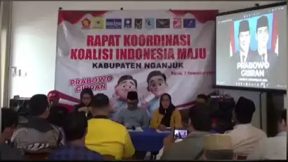 Nganjuk, tvOnenews.com - Sembilan partai politik Koalisi Indonesia Maju (KIM) yang ada di wilayah Kabupaten Nganjuk, membentuk Tim Pemenangan Daerah dan Tim Kampanye Daerah (TKD) untuk memenangkan calon presiden dan calon wakil presiden (capres dan cawapres) Prabowo Subianto-Gibran Rakabuming Raka, pada Pemilu 2024 mendatang.