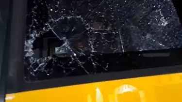 Penumpang yang di dalam bus pun meminta semua untuk berpindah, karena kaca pecah terkena lemparan batu.