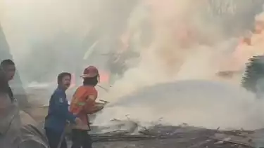 Sidoarjo, tvOnenews.com – Insiden terbakarnya sebuah toko sekaligus gudang pengolahan kayu di kawasan Jalan Raya Sarirogo Sumput, Sidoarjo, Jawa Timur terjadi Rabu siang (20/12). Ratusan batang kayu siap jual yang berada di lahan milik Gatot, warga Sumput, Sidoarjo ini ludes terbakar.
