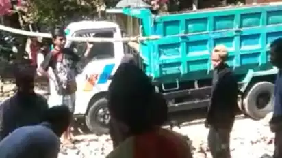 "Kata warga, mereka kesal dengan aktivitas lalu lalang dum truk tambang tersebut. Karena menyebabkan jalan rusak dan pipa air bocor," jelasnya.