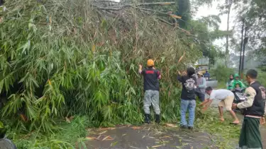 Hujan di Hari Natal, Rumpun Bambu Ambrol Tutup Jalan Raya Ngantang - Wlingi Blitar