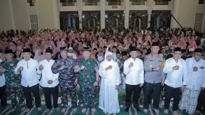 Surabaya, tvOnenews.com,- Gubernur Jawa Timur Khofifah Indar Parawansa bersama Wakil Gubernur Jatim Emil Elestianto Dardak dan segenap jajaran Forkopimda Jatim menghadiri Dzikir, Doa, dan Sholawat Bersama menyambut Tahun Baru 2024. Momen ini juga menjadi ajang merefleksikan berbagai pencapaian selama kepemimpinan Dwi Tunggal Khofifah-Emil di Jawa Timur.
