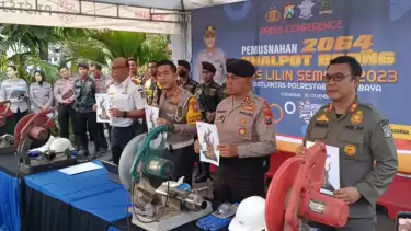 Surabaya, tvOnenews.com – Satlantas Polrestabes Surabaya hingga saat ini, tercatat telah menyita sebanyak 2.064 knalpot brong. Dari seluruh yang diamankan itu, sebanyak 1.348 knalpot disita pada malam pergantian tahun Desember 2023 hingga awal tahun baru 2024.