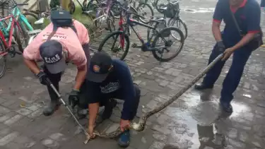 "Kami dalam satu hari ini mengevakusi ular di dua tempat, satu ekor ular piton berada di atap rumah warga, dan satu lagi berada di sebuah sekolah Madrasah Ibtidaiyah," Kata Multazam Adjie, Petugas Pemadam Kebakaran Bangkalan, Rabu (3/1).