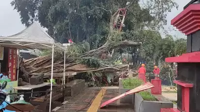 Pohon Beringin Tumbang Timpa Lapak Pedagang di Alun-alun Kota Blitar, 10 Orang Alami Luka